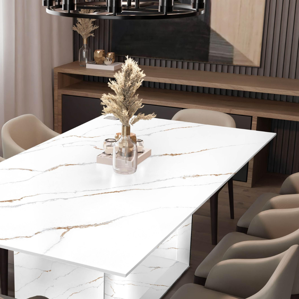 The Statuario Series by FionExim embodies sophistication and purity, inspired by the classic charm of Italian Statuario marble. Each quartz surface features subtle grey veining on a pristine white base, creating an elegant and timeless aesthetic. Designed for luxury interiors, our Statuario quartz offers the perfect blend of natural beauty, durability, and easy maintenance — ideal for kitchens, bathrooms, and statement spaces that demand both style and strength.